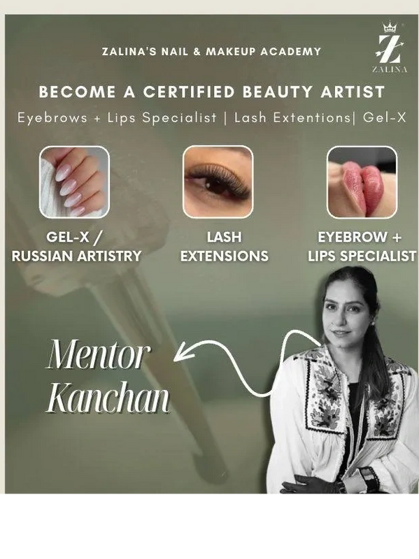 Zalina’s Nail & Makeup Academy is a premium beauty academy and service studio in Pune, offering international-standard training and professional services in Permanent Makeup (PMU), Lip Blush, Eyebrow PMU, Russian Nail Artistry, Gel-X Nail Extensions, Eyelash Extensions, Bridal Makeup, and advanced nail technology. The academy provides ce